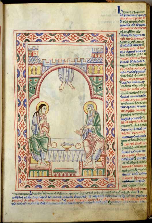 wurde, wird die Emmaus-Geschichte von drei Miniaturen begleitet. Die ganzseitigen
