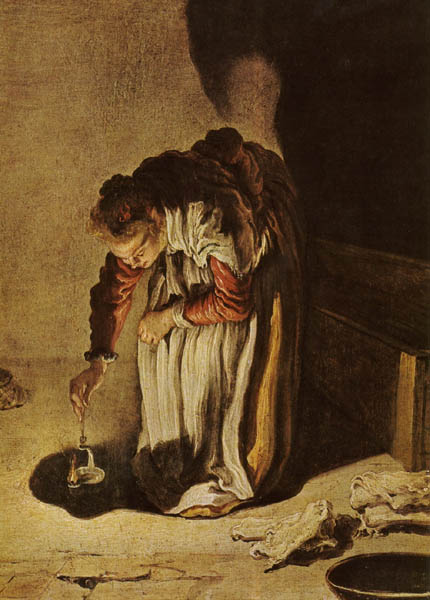 verlorene Münze. Gebeugt, mit der Öllampe in der Hand, sucht sie nach