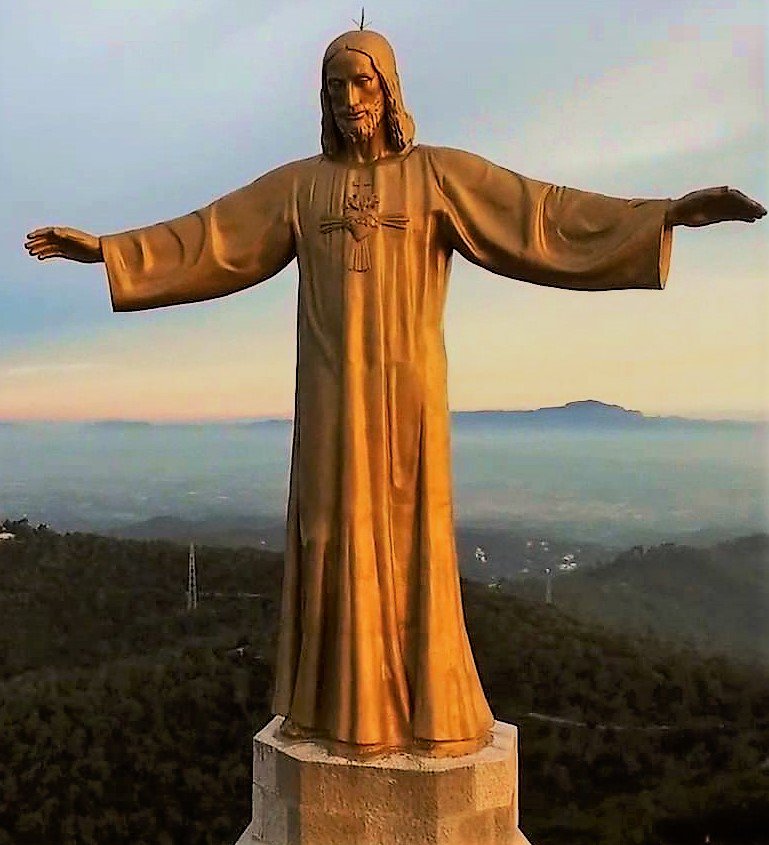 von einer bronzenen Christusstatue, die mit ausgebreiteten Armen über